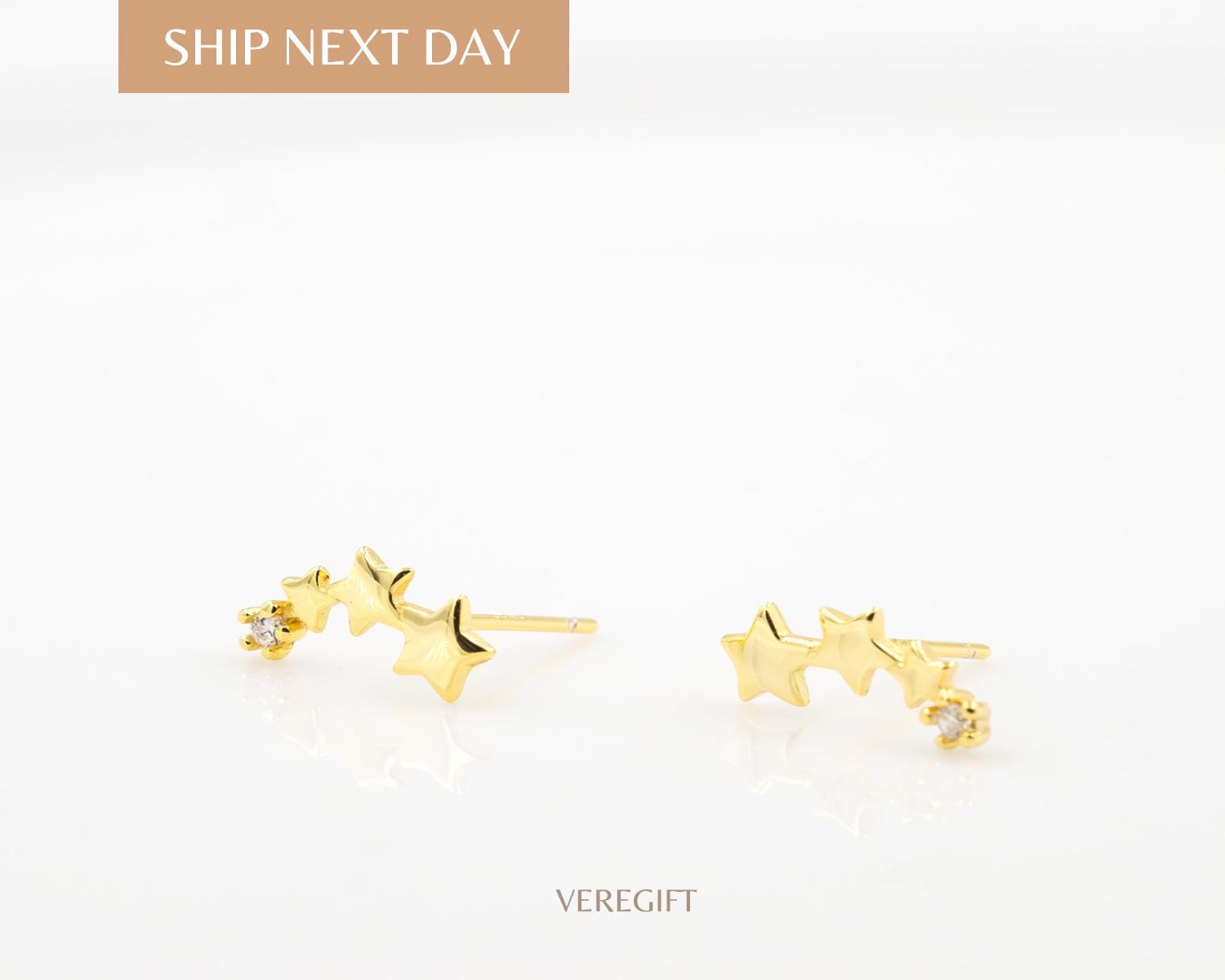 14K Gold Plated S925 Sterling Silver Gradient Star Meteor Stud Earrings-EH5009