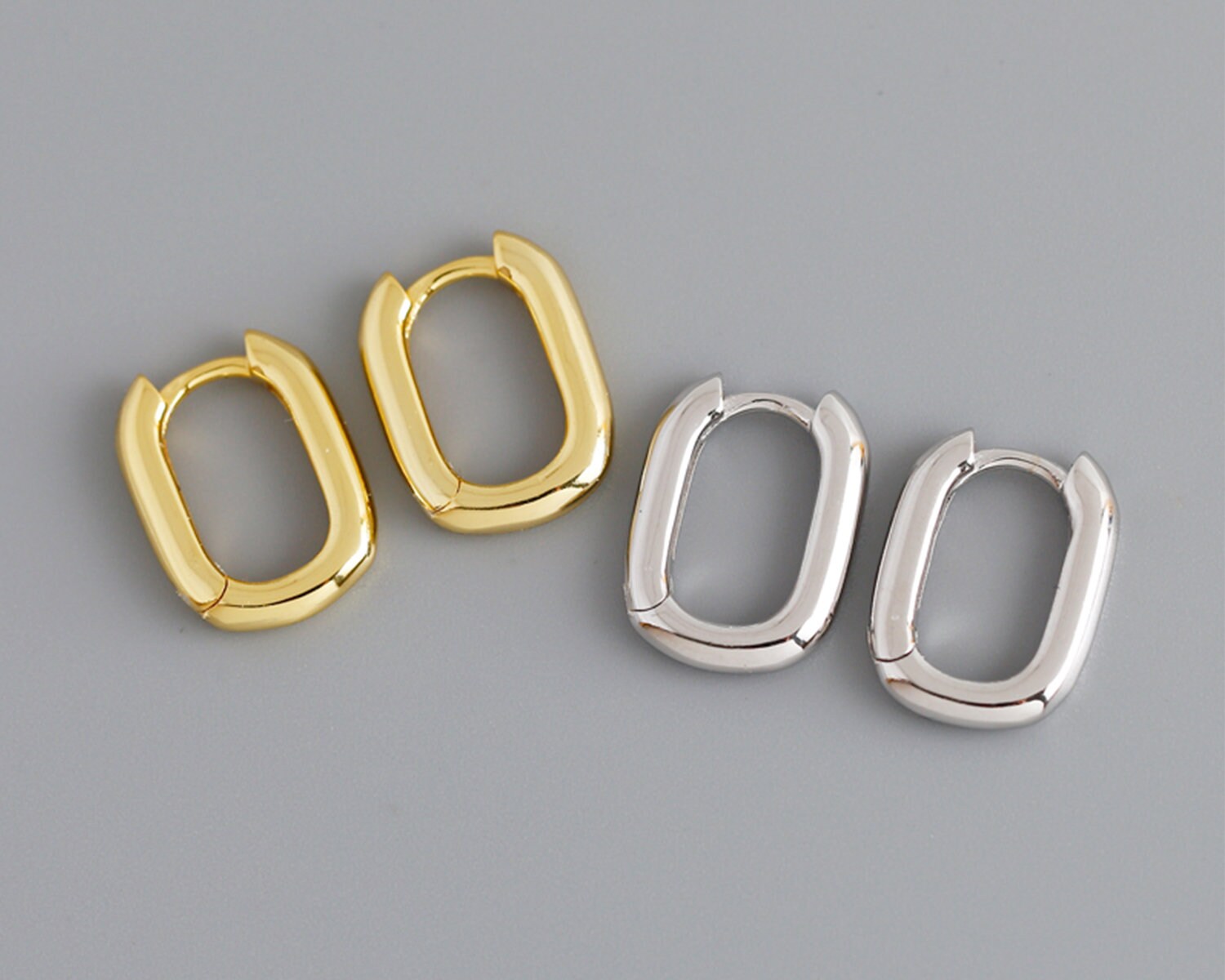 18k Gold Plated Rectangular Hoop Earrings: Minimalist Sterling Silver