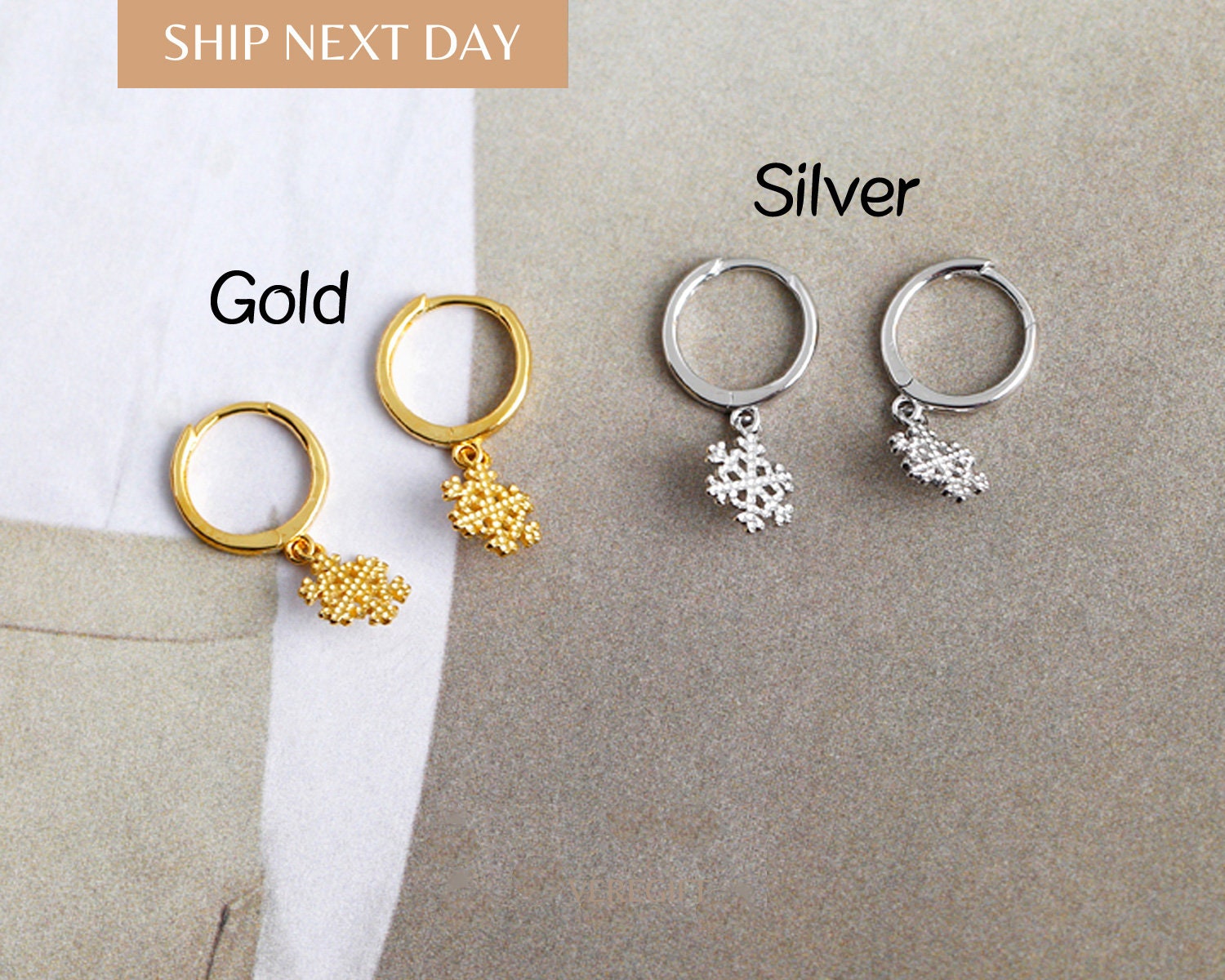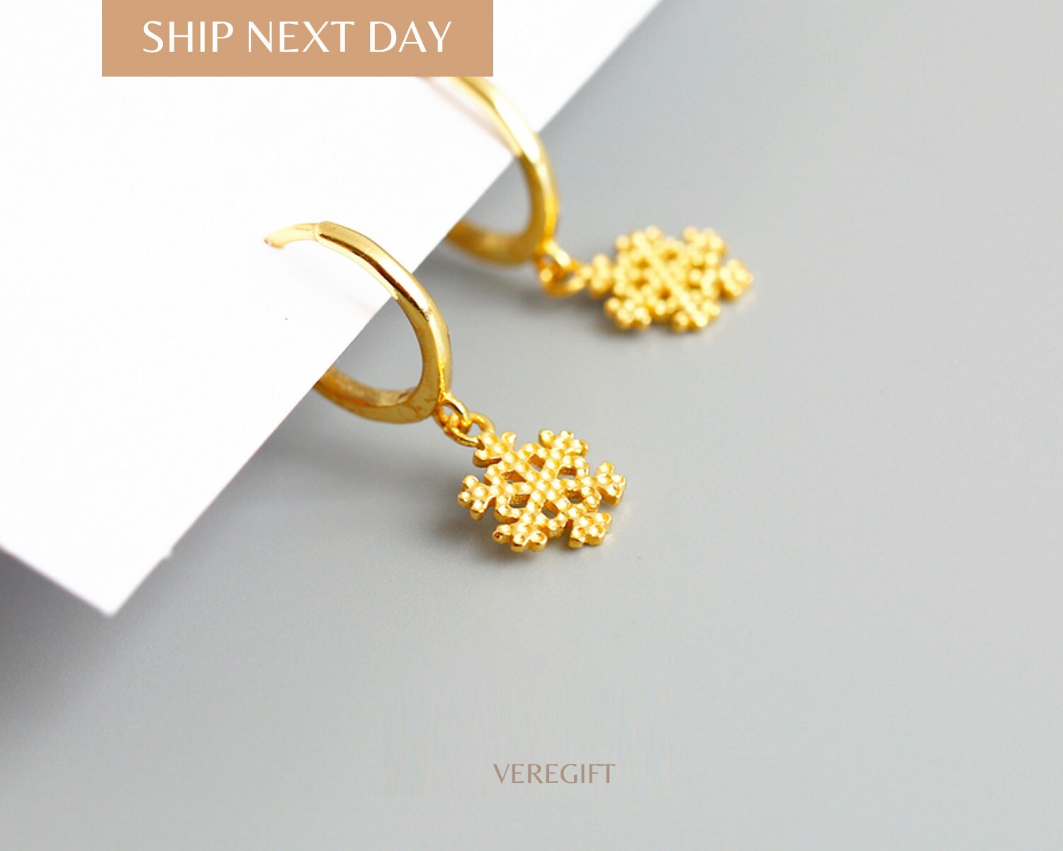 18k Gold Plated Snowflake Hoop Earrings: Sterling Silver Minimalist Jewelry