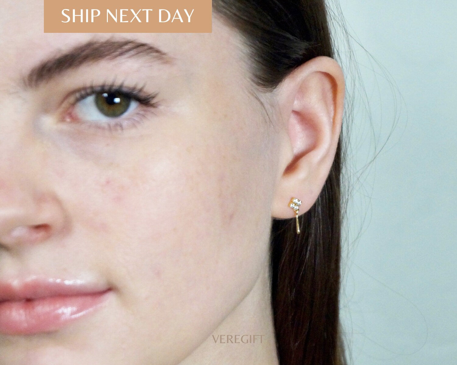 birthday gift, minimalist earrings, Exquisite Diamond-Studded S925 Silver Plated 14K Gold Earrings -EH5005