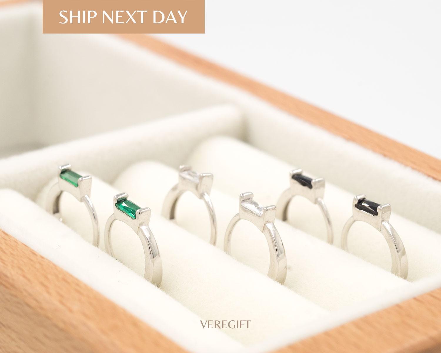 Dainty Baguette CZ Hoop Earrings: 18k Gold Plated Sterling Silver Huggies